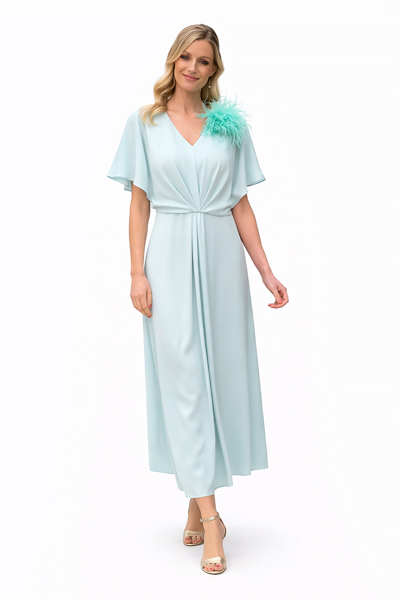 Groene wikkeltop met geplisseerde midi-rok in metallic jacquard