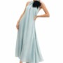 Raffa Boutique – Elegant light blue, satin halter dress with a flowing loose fit. The broche is not included with the outfit
